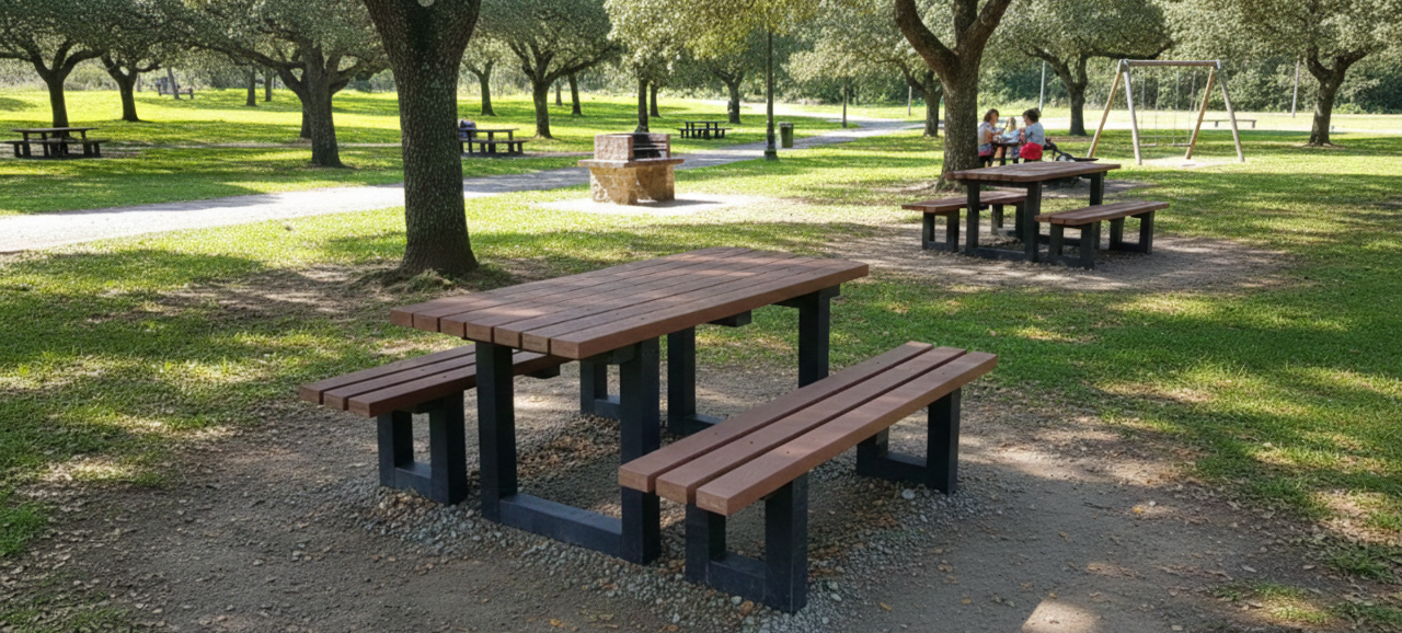Estrutura em plástico 100% reciclado com reforço metálico, possibilidade de gravação personalizável com baixo relevo. Cor: g g